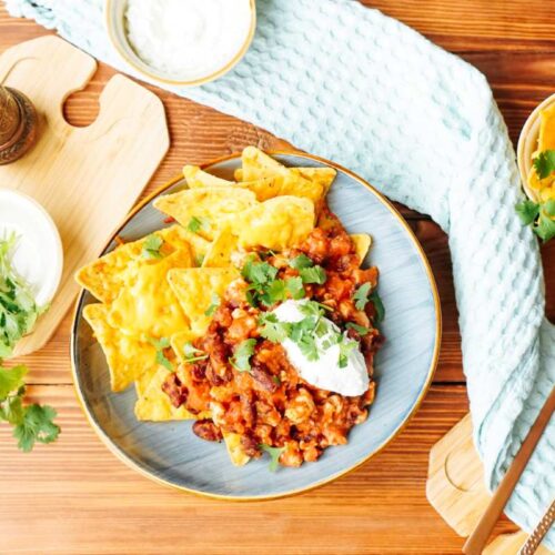 Immediately serve the turkey chilli and nachos whilst they are still warm enough to enjoy.